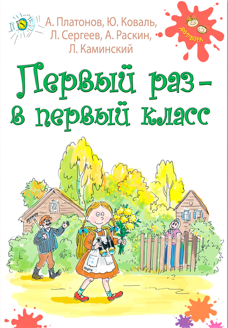 Маленький человек впервые пошёл в школу. Какое это важное событие в его жизни: первый раз – в первый класс! В школе вместо мамы – учительница, вместо игрушек – учебники и тетради. И нельзя опоздать на урок или пошалить в классе. И нужно быть внимательным и аккуратным. И вообще привыкать к этой новой школьной жизни – такой непростой, но весёлой и интересной! Авторы сборника: Платонов Андрей Платонович, Коваль Юрий Иосифович, Каминский Леонид Давидович , Сергеев Леонид Анатольевич, Раскин Александр Борисович.